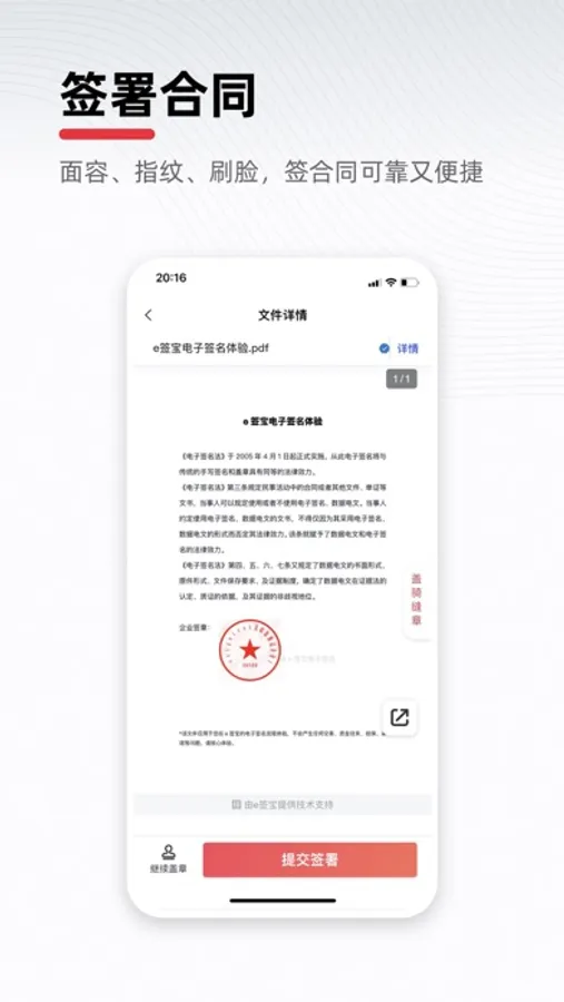 1. 电子签名:支持包括版式文件、流式文件、数据流等不同电子数据形态的签署