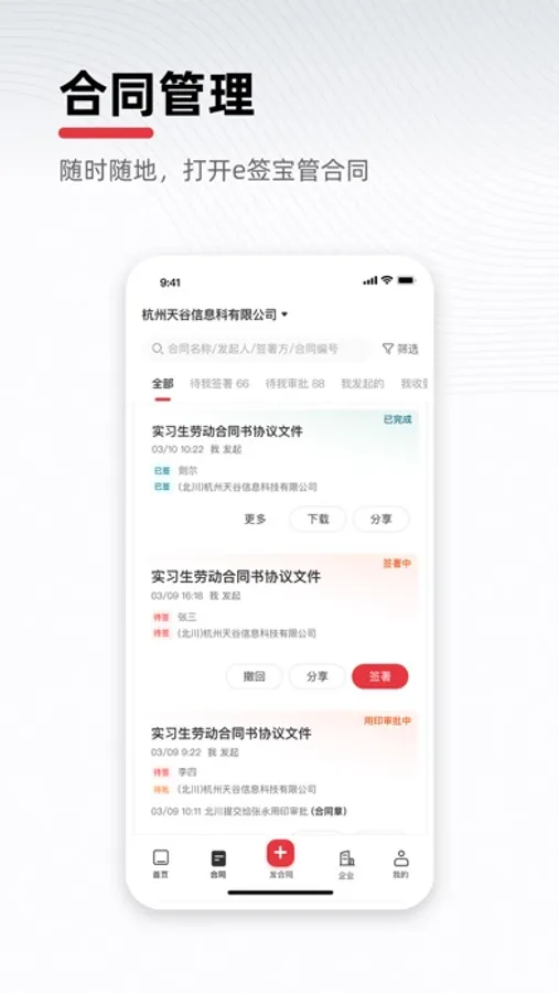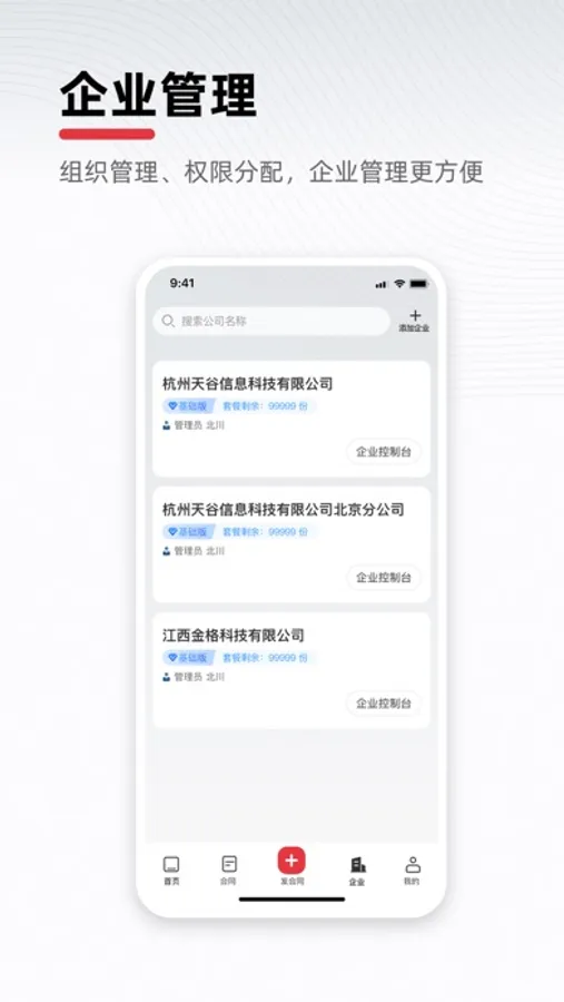 2. 文件管理:可实现合同在线拟定、审批流转、合同存管、印章管理授权、模板服务、行业场景定制接入等服务;