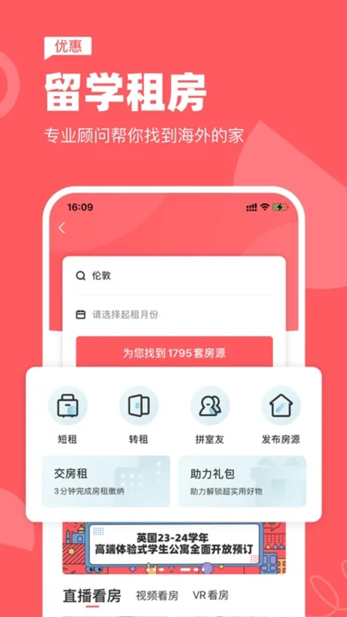 *海量房源:公寓,整租合租,学校宿舍,Homestay,校园短租等;