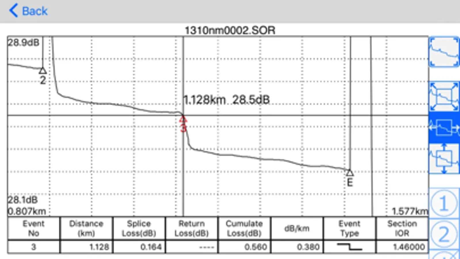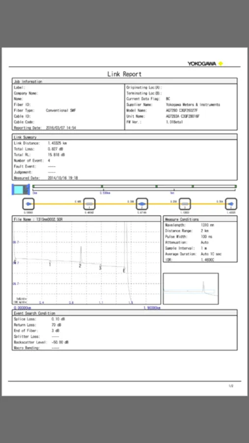 This application can display the OTDR files with the extension .SOR, .PDF, .BMP, .JPG