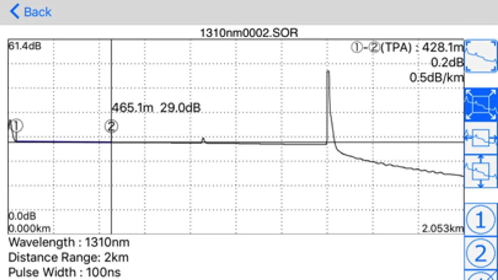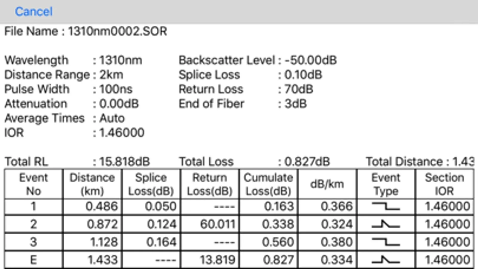 It will also enable the ability to easily mail the measurement trace, report, or image file (.SOR/.PDF/.BMP/.JPG) after the file is transferred to the iPad or iPhone.