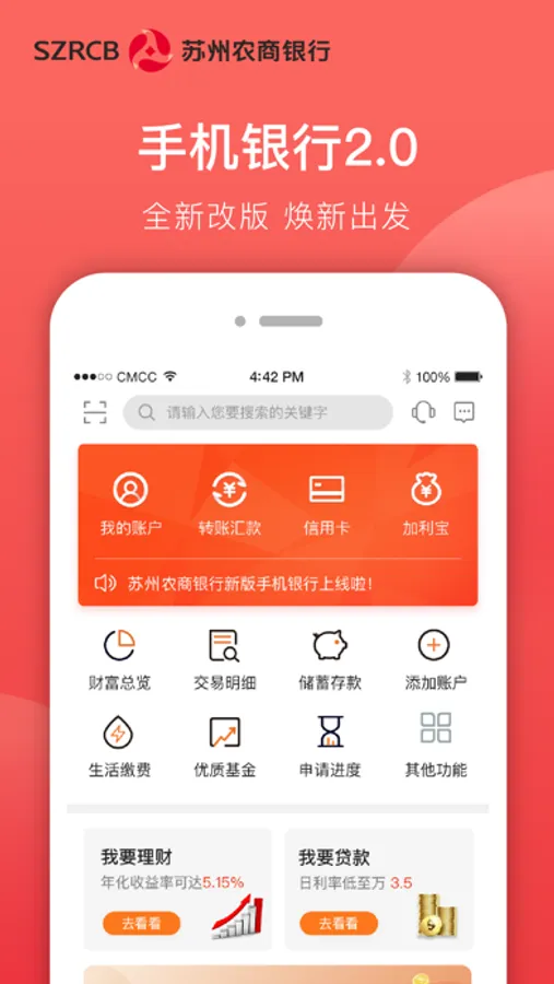 苏州农商行推出的移动金融生活服务平台iPhone客户端,让您在随时、随地、随心地享用移动金融服务的同时,享用便捷的本地化生活服务。