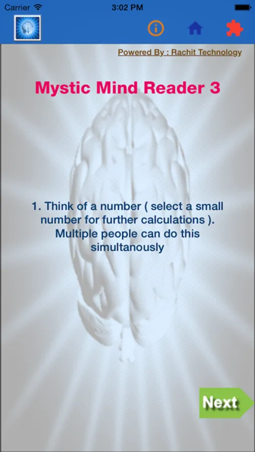 Get ready for some Amazing & FREE, Mind Reading tricks on your phone. Enjoy 10 unique illusion- puzzles; you can play alone or with your friends. Download this app, as it is a Perfect party entertainer app. Impress your friends and family with great Mind Reading tricks. Keep calculator handy if you want to increase difficulty level. We guarantee 100% success rates with each result (if rules are followed correctly).
