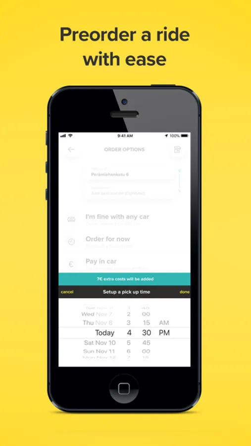 You can order a taxi for a pickup right away or for later. The app makes pre-ordering smooth and easy, ensuring a ride for any moment in time you wish.