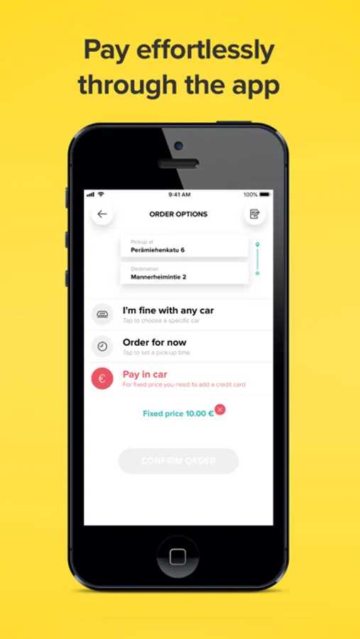 With Taksini you can pay the ride comfortably right in the app. You can add your own credit cards to your profile, and when paying with the app you will always get the receipts sent straight to your email.