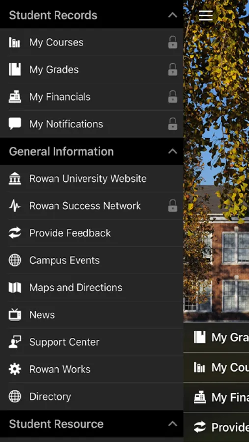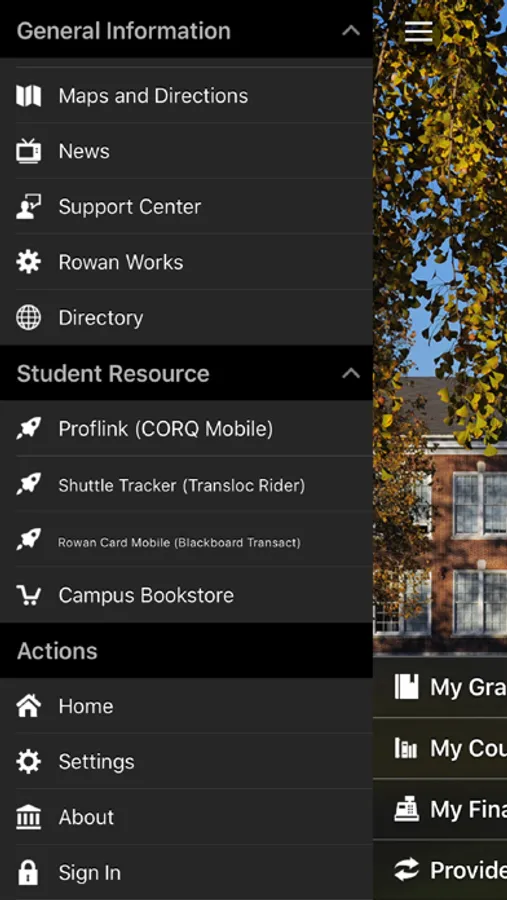 • With Rowan Mobile, you can quickly access important student resources, like course schedules and financial information, and key University applications, like the Shuttle Tracker, Tapingo and Proflink, in one location.