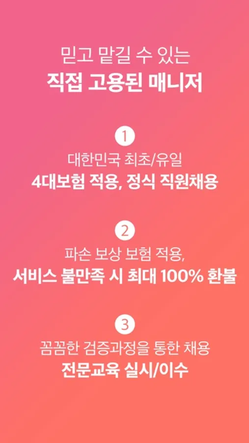 철저한 신분 인증, 우수 매니저 양성 프로그램 운영