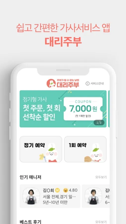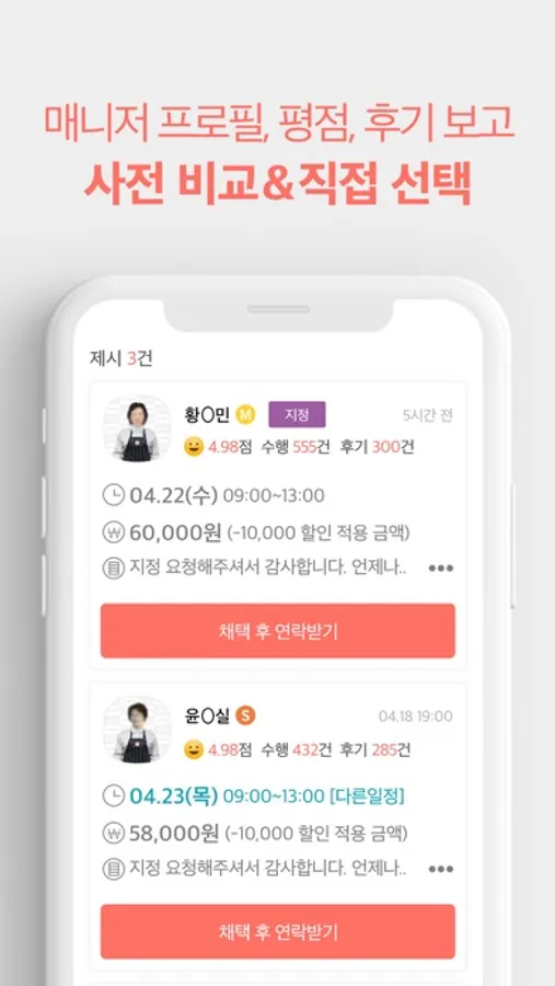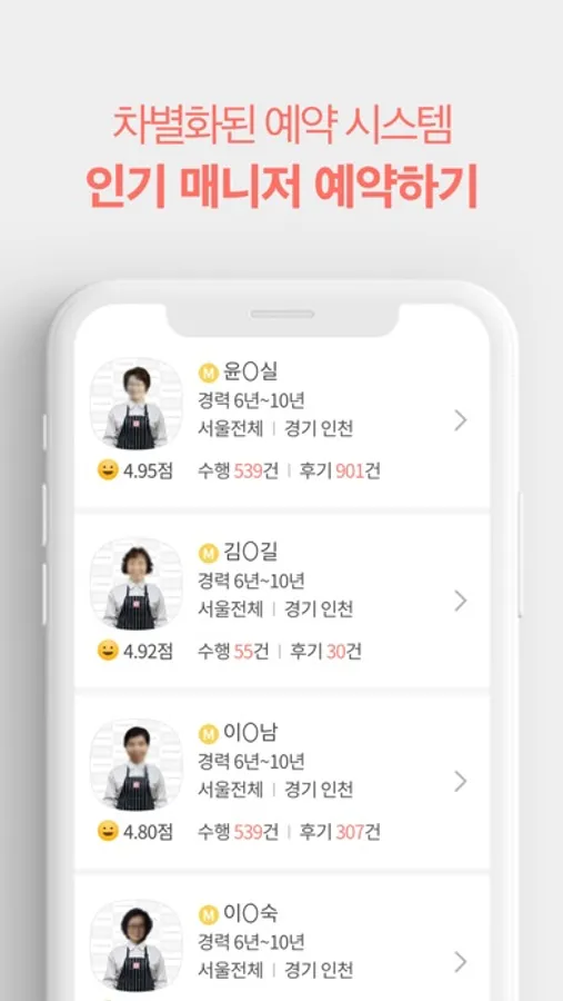 이용후기&평점으로 검증된 매니저를 직접 선택해 보세요!