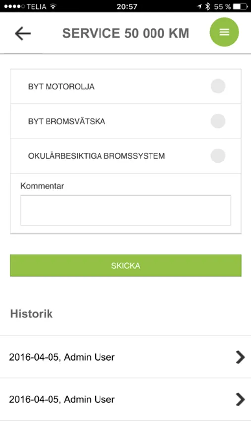 Luftfiltret bytt, domkraften finns i brandbilen, badrummet städat eller något annat, som bekräftar att en önskad åtgärd är utförd.
