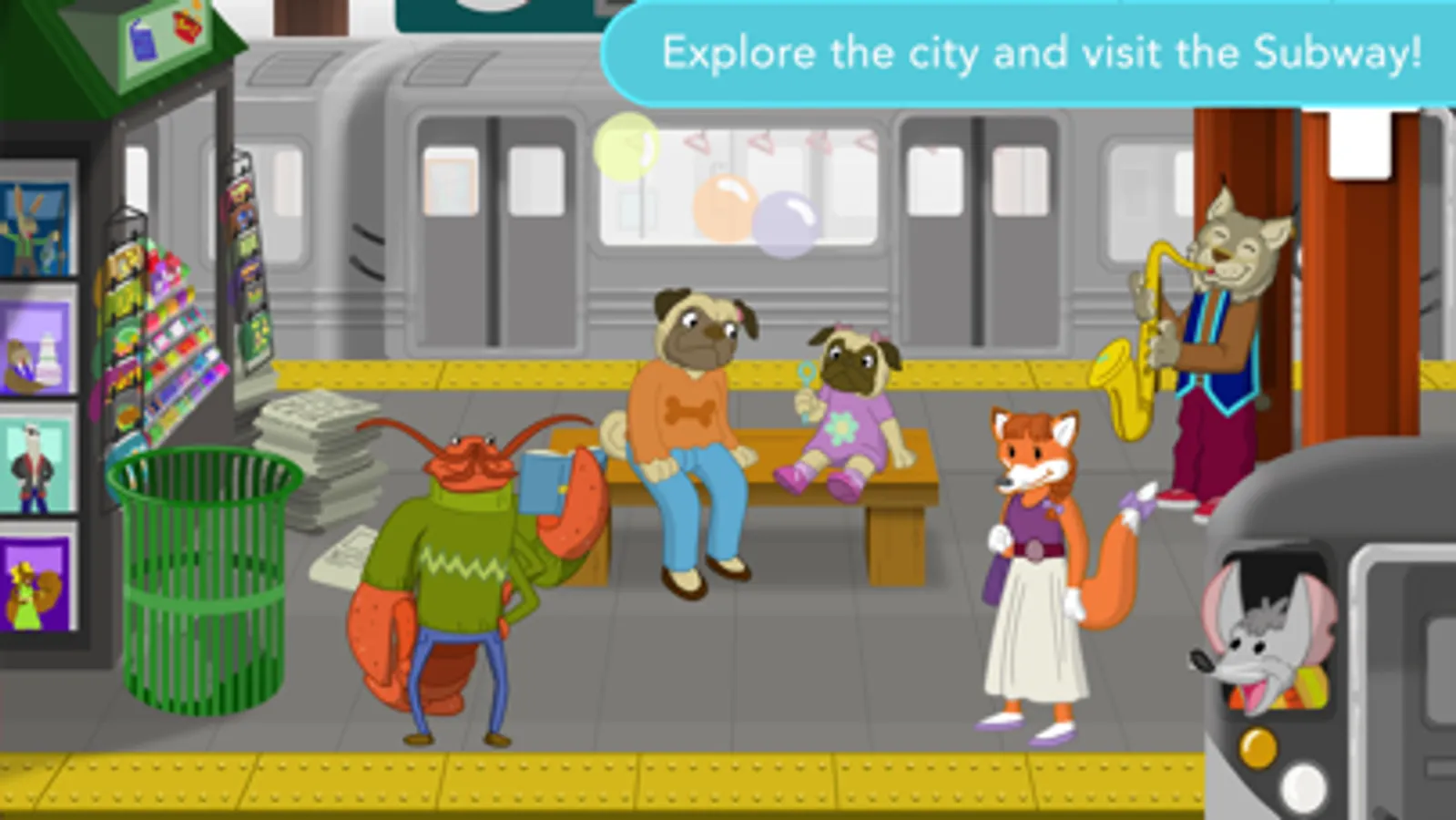 Let your little ones explore city life with its many vehicles and surroundings. Meet the funny animal characters and learn about vehicles in the street, the sky and the subway.
