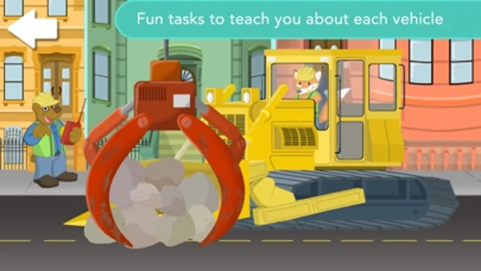 Designed for kids, ages 1-5, Big City Vehicles is full of games, fun surprises and educational tasks that will develop your child's creativity and problem solving skills. Your toddlers can help to mix cement, put out fire, help the paramedic and shovel rocks with a bulldozer.