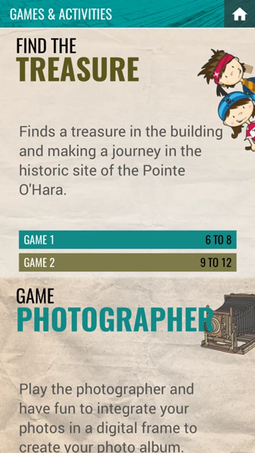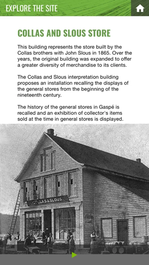 Interactive treasure games invite children to discover the site through riddles. The application also explains the history of Gaspe and its four heritage trails.