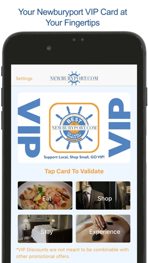 There is no cost to download the Newburyport App and utilize the majority of its features. If you would like to receive a login to digitally display your Newburyport VIP Card and receive local discounts, you will be prompted to buy a card. Purchase one card for $25 or two for $40 and $10 of your purchase or renewal will be donated to the local nonprofit partner that you select from the order form list. You will receive an email from VIPcard@Newburyport.com with your login credentials and program details. Once you login tap the VIP Card image, it will display your expiration date and a green √ mark indicating that your VIP Card is valid. There is no swiping or scanning with the VIP Program. Simply tap and show your card when shopping and dining at Greater Newburyport participating businesses.