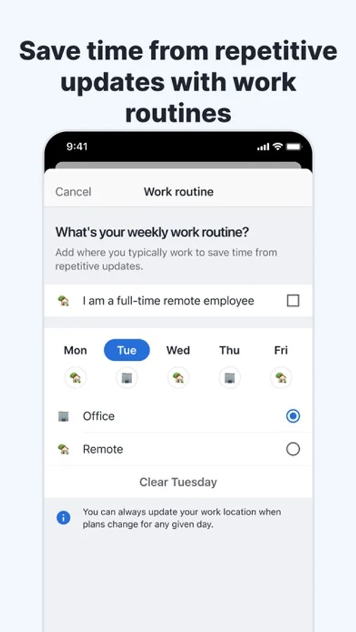 Your office plans automatically sync from iOS to Google Calendar so you can easily keep everyone updated on where you’ll be, effortlessly.