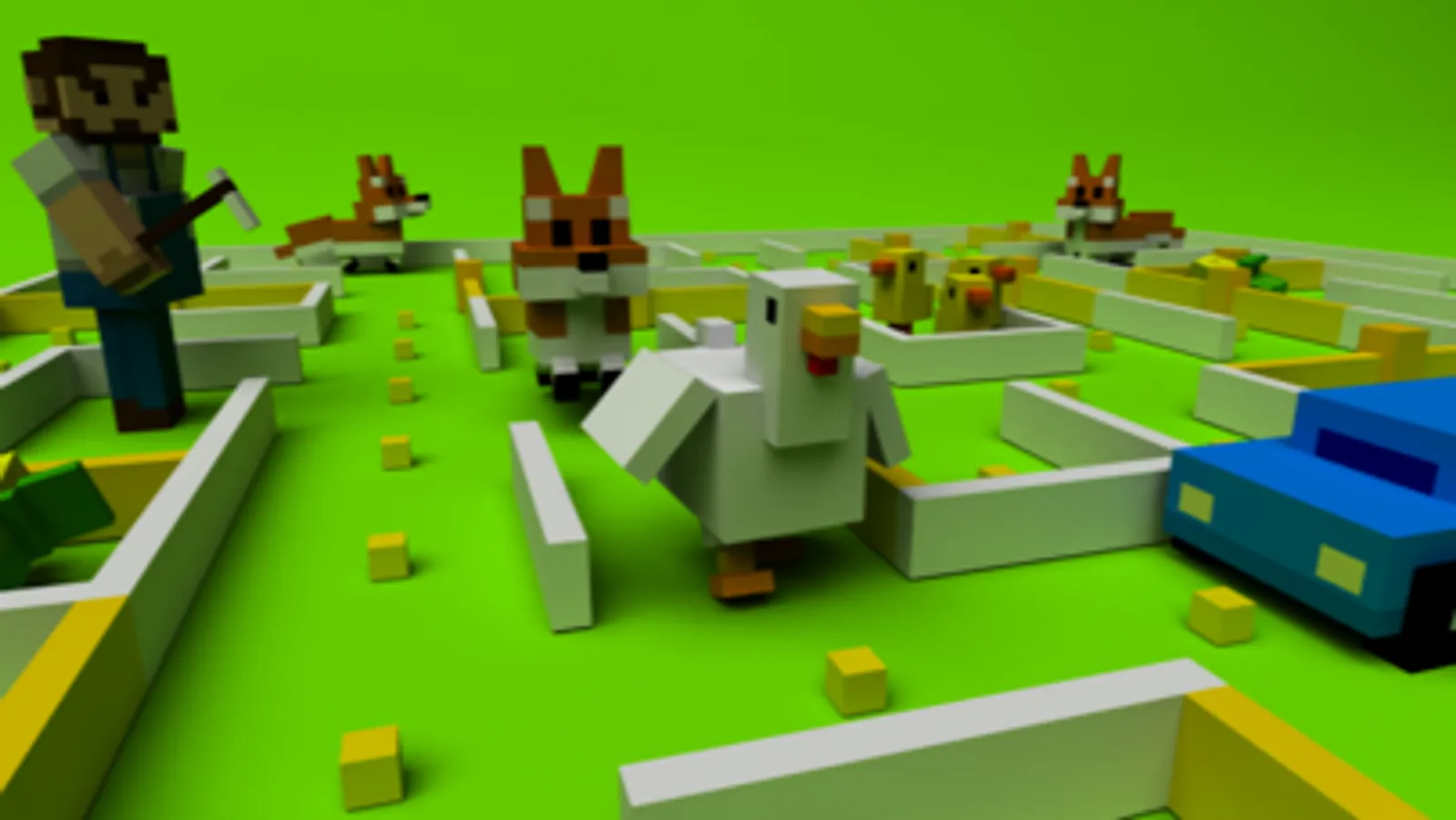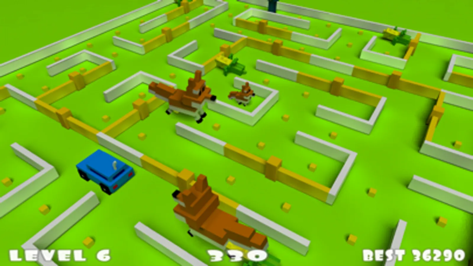 The chicken is lost in a maze, hunted by the fox! Use revolving fences to cut the foxes path, create safe zones in the maze and escape the naughty boy's RC car!