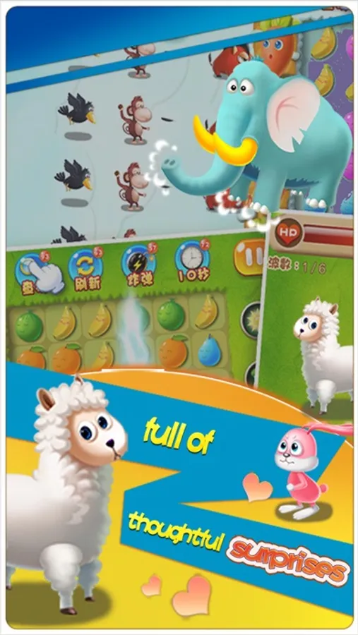 Lovely fruit characters, cunning animal attackers, no another matching game has so many cartoon images and roles!