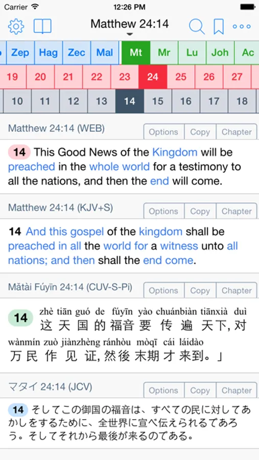 * Jump from viewing just the selected verses to the Chapter window to get the full context.