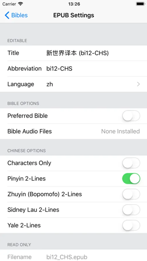 * Load multiple languages side-by-side for sharing in the ministry with those from different cultures. Great for language learners.