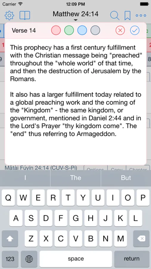 * Add study notes against verses. View notes for the current chapter in a side-panel (iPad and iPhone Plus). Access all notes from the toolbar.