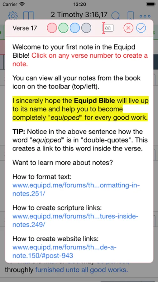 I sincerely hope the Equipd Bible app can help you to be "completely equipped for every good work"! — 2 Timothy 3:17.