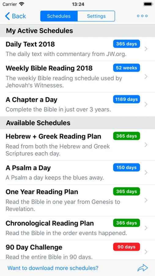* Bible Reading Schedules with reminder notifications. You can setup one or multiple schedules at a time. Never get behind on daily Bible reading again.