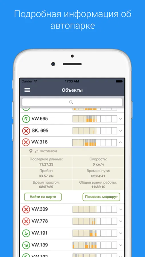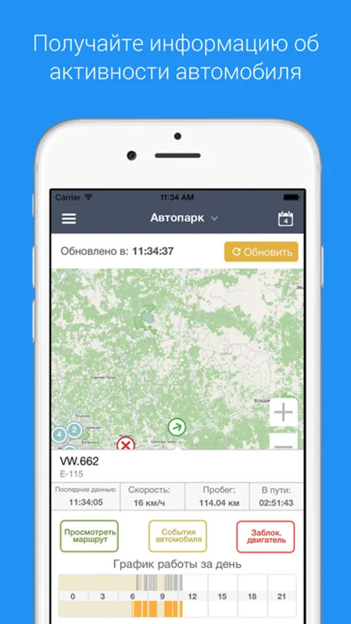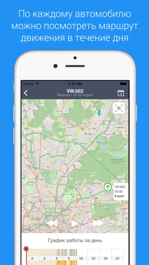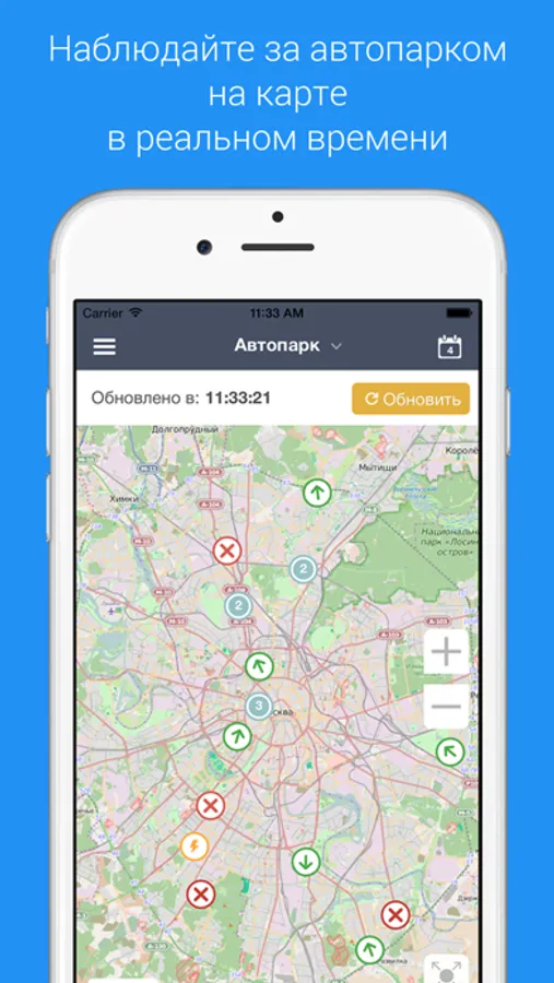 Приложение позволяет отслеживать передвижение и работу транспортных средств, оборудованных ГЛОНАСС-терминалами Egrix