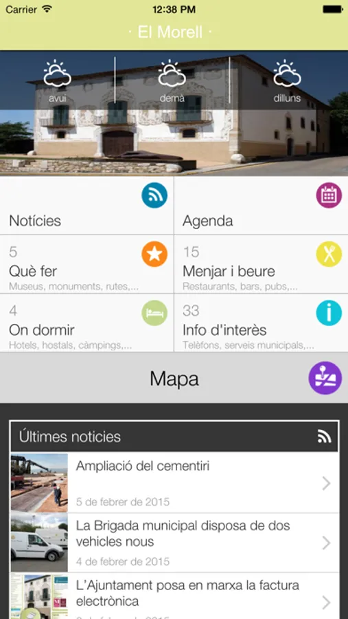 El Morell APP permet explorar i descobrir totes les activitats del municipi. També podràs consultar les notícies i l'agenda cultural, esportiva i social del Morell. Posem al teu abast la llista d'allotjaments, la de restaurants i la de tots els serveis que ofereix El Morell.