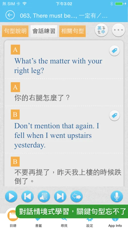 用最貼近老外的說法,學最實用的口語會話,不用背幾千個單字,不需記幾十個文法,用英語溝通很簡單,開口說一點都不難。本 app 根據名師蔣志榆編著之「勇敢開口說英語」一書製作而成,善用本書內容,不用出國學也能開口說流利的英語。