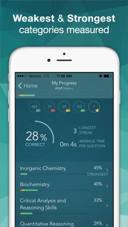 • Track your progress and evaluate your strongest subjects and areas needing improvement