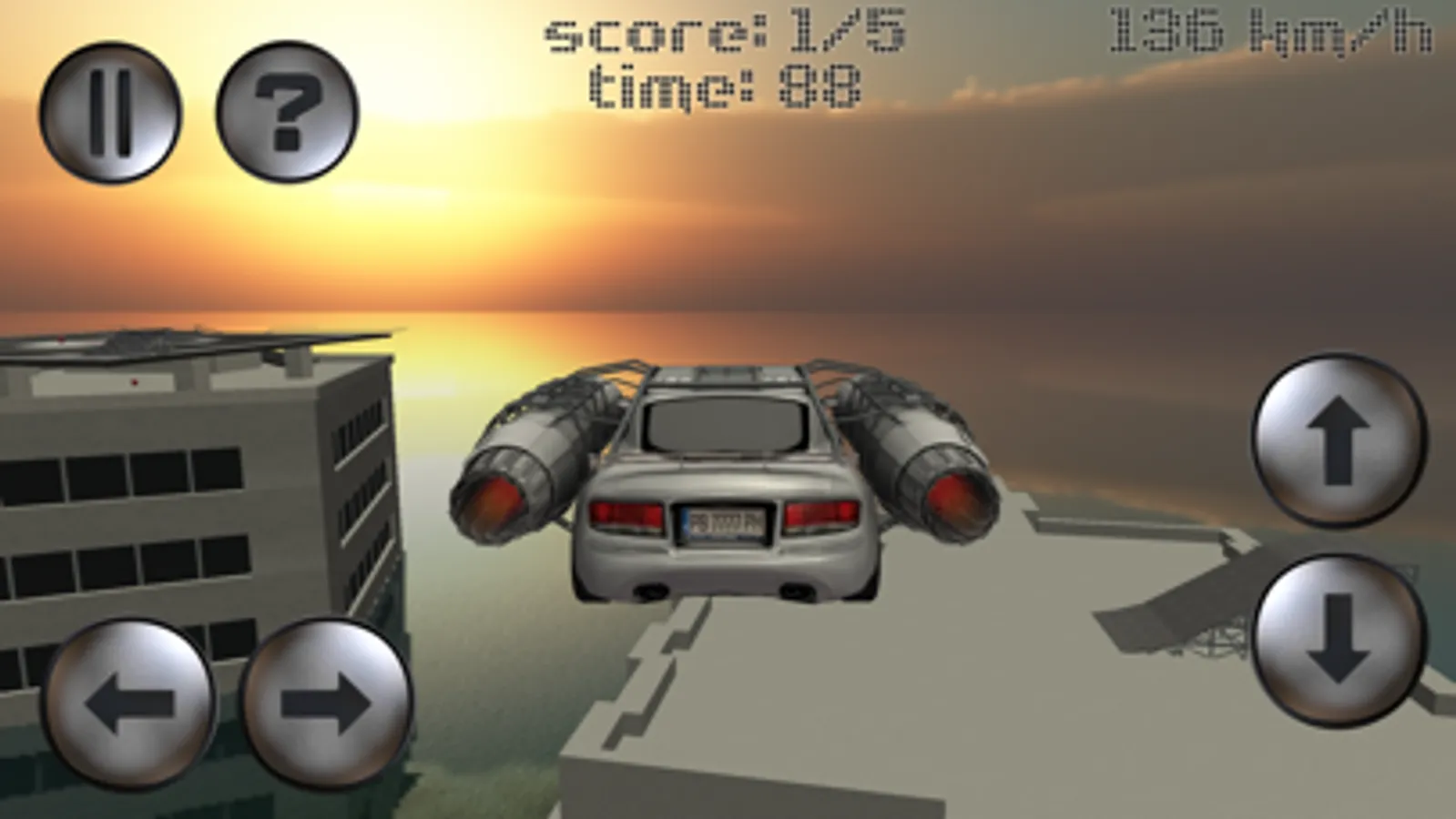 Jet Car - Extreme Jumping is an innovative adrenaline fueled, action packed, 3D car driving and jumping game. The level environment is a simulation of a flooded city with high-rise buildings. To complete each level you need to make extreme jumps from rooftop to rooftop in order to find all fuel canisters.
