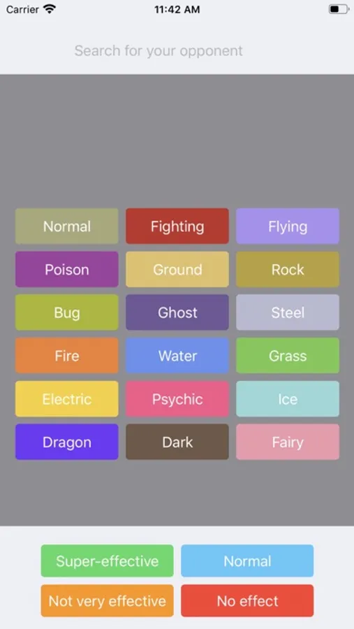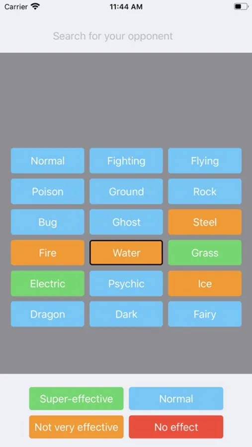 Quickly find your opponent in the full Pokémon database and calculate the most effective move to use! Exploit type advantages and make sure your moves won't have a reduced affect.