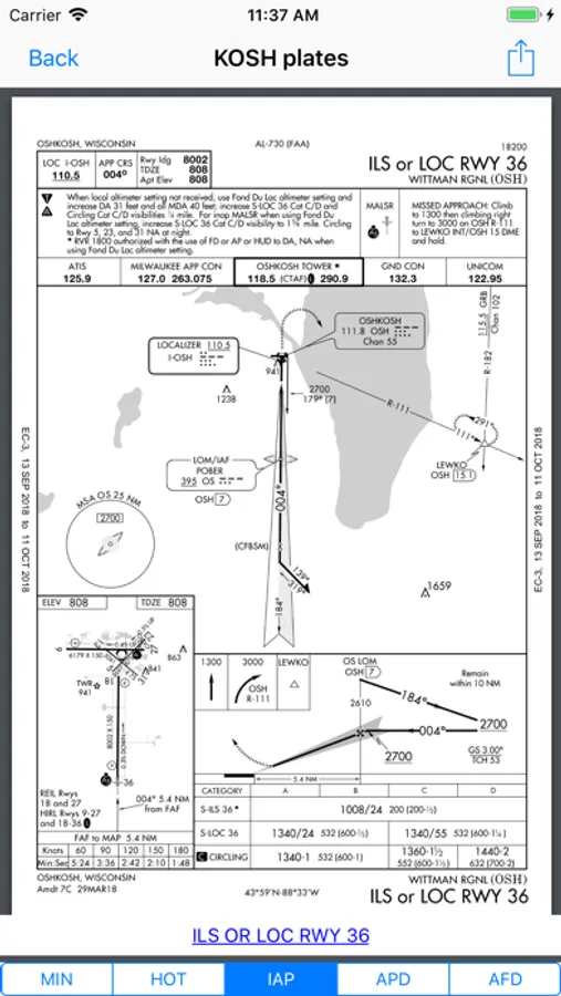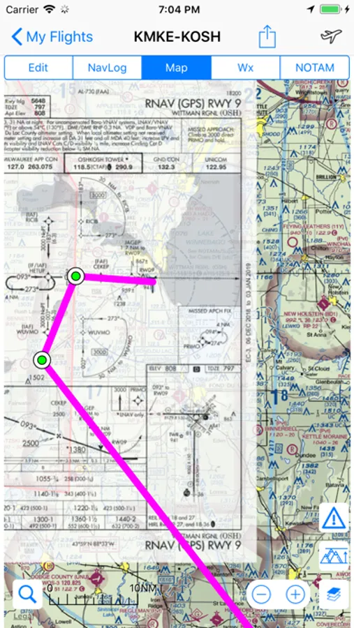 Airmate includes a worldwide aeronautical database updated free of charge with airports, navigation beacons, waypoints, airways, obstacles, regulated and restricted areas. Topographic maps and elevation data for most countries may be downloaded free of charge, as well as additional aviation map overlays such US Sectionals. A procedure database provide details of departure (SID), arrival (STAR) and instrument approaches in the USA, and you could add those procedures to your planned flight route (the procedure database includes all US airports, we are workding to add airports in other countries). Once loaded, the procedure path is displayed on the aeronautical map, including curved paths and racetracks.