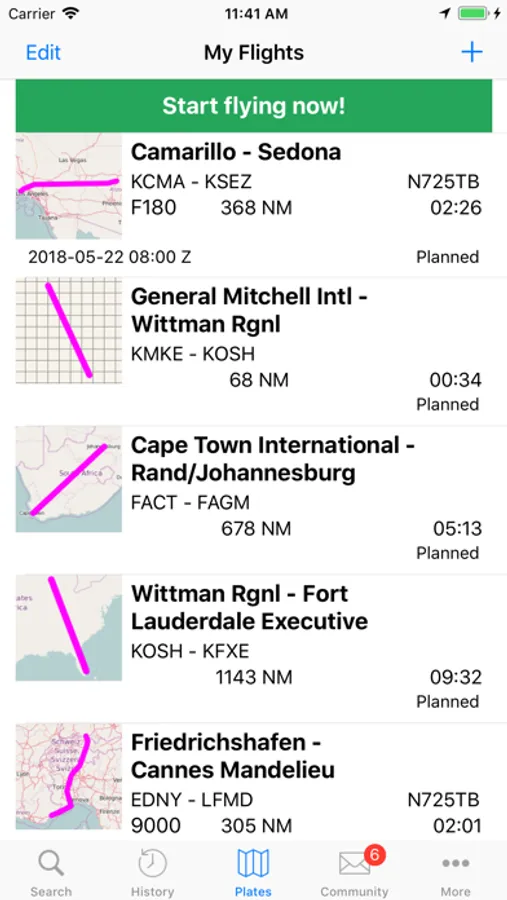 Airmate will save planned and flown flights, user waypoints and user aircrafts in the cloud and sync them between your devices and Airmate web flight planning.