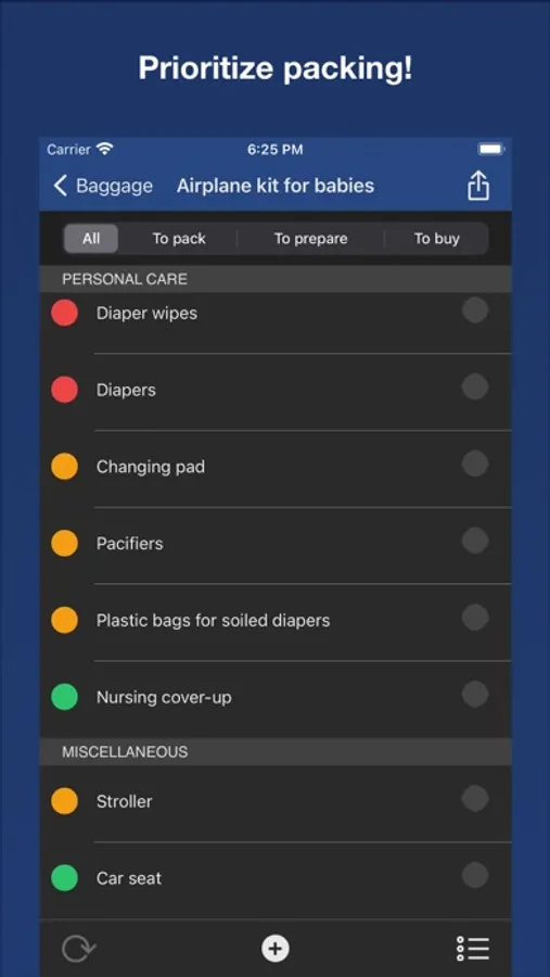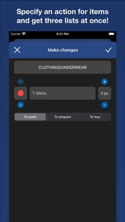 Then these things can be viewed and marked in the "Prepare" and "Buy" sections.