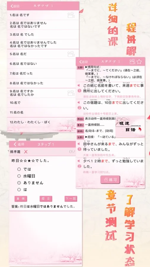 ◎学习页面配有每个文型的用法说明、例句、例句音频;