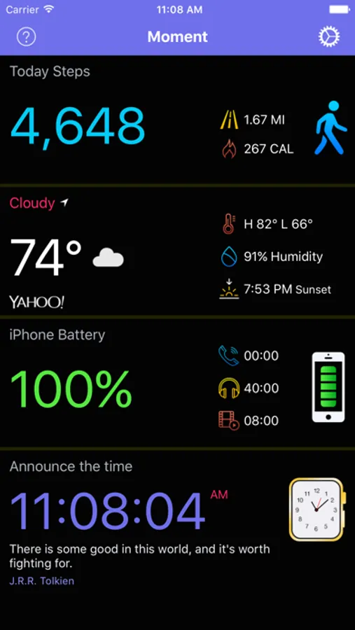 Moment - Easy and Smart Dashboard for iPhone and Apple Watch makes your life easy, smart and focused on your health.
