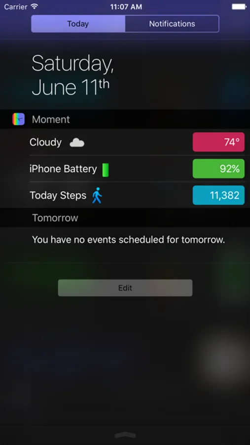 Moment offers a dashboard widget that is placed in the Notification Center.