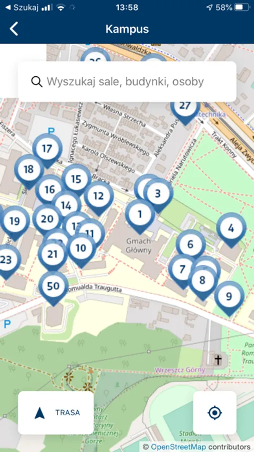 Ostatnia pełni funkcję wirtualnego przewodnika po kampusie. Za pomocą modułu "Kampus" można ustalić pozycję na terenie kampusu. Następnie system zaproponuje ścieżkę dojścia z punktu wybranego do docelowego, a także pomiędzy pomieszczeniami korzystając z funkcji wyznaczania trasy.