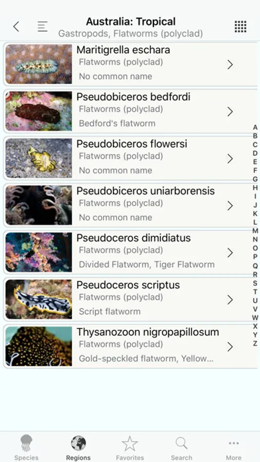 - You can select from 31 pre-defined menu based regions, examples “Caribbean Sea”, or “Australia, tropical” or “West coast United States” and see the species only from that region.