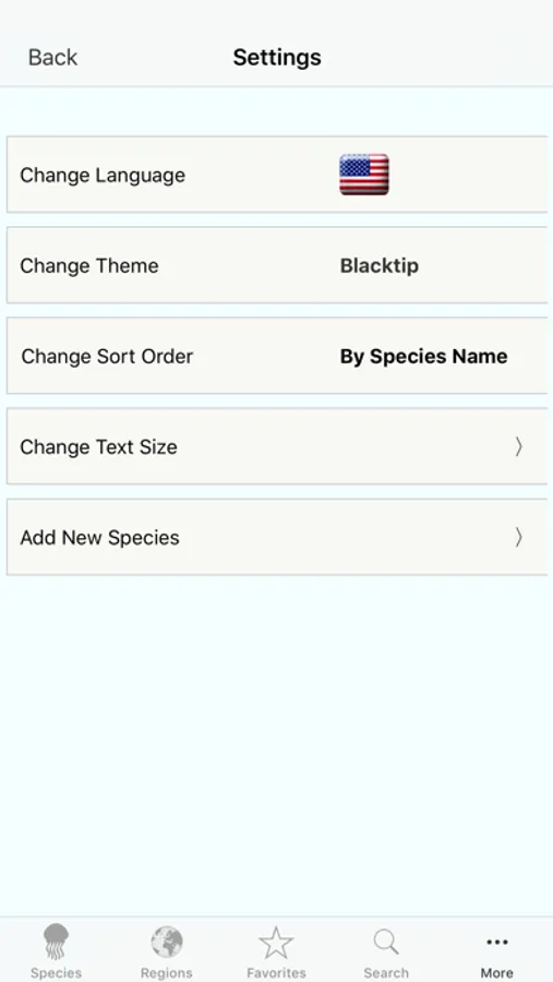 Each menu can be toggled to display presented species either in a list view format or as a grid view, depending on individual preferences.