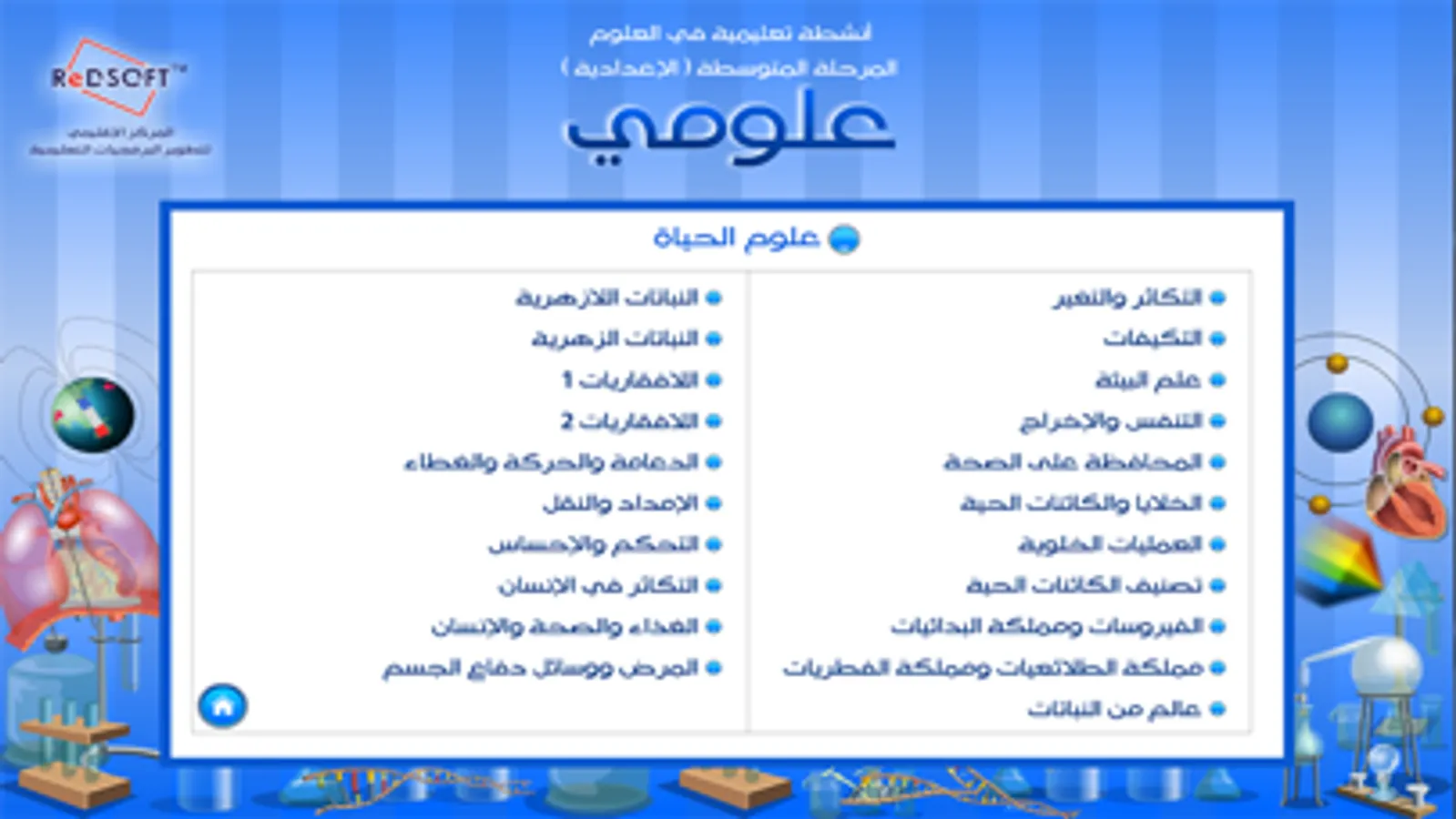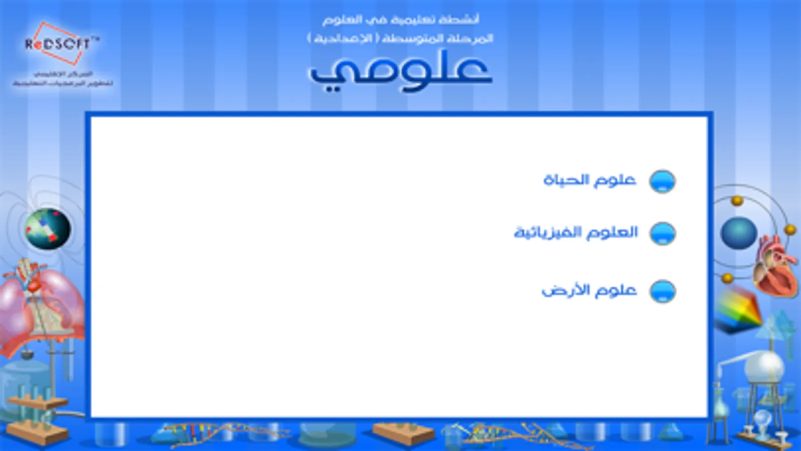 ﻴﺄﺘﻲ ﻫﺫﺍ ﺍﻹﻨﺘﺎﺝ ﺍﻨﻁﻼﻗﺎ ﻤﻥ ﺍﻟﺩﻭﺭ ﺍﻟﺭﺍﺌﺩ ﻟﻠﻤﺭﻜـﺯ ﺍﻹﻗﻠﻴﻤـﻲ ﻟﺘﻁـﻭﻴﺭ ﺍﻟﺒﺭﻤﺠﻴـﺎﺕ ﺍﻟﺘﻌﻠﻴﻤﻴﺔ ReDSOFT ® ﻜﻤﻨﻅﻤﺔ ﺇﻗﻠﻴﻤﻴﺔ ﻏﻴﺭ ﻫﺎﺩﻓﺔ ﻟﻠﺭﺒﺢ ﺃﺨﺫﺕ ﻋﻠﻰ ﻋﺎﺘﻘﻬﺎ ﻤﻬﻤﺔ ﻨﻘـل ﺘﻘﻨﻴﺔ ﺇﻨﺘﺎﺝ ﺍﻟﺒﺭﻤﺠﻴﺎﺕ ﺍﻟﺘﻌﻠﻴﻤﻴﺔ ﺇﻟﻰ ﺍﻟﻤﻨﻁﻘﺔ ﺍﻟﻌﺭﺒﻴﺔ، ﻤﻥ ﺨﻼل ﺩﺭﺍﺴـﺔ ﻭﺘﻁـﻭﻴﺭ ﻭﺇﻨﺘـﺎﺝ ﺒﺭﻤﺠﻴﺎﺕ ﻭﻤﻭﺍﺩ ﺘﻌﻠﻴﻤﻴﺔ ﻤﺒﻨﻴﺔ ﻋﻠﻰ ﺍﺴﺘﺨﺩﺍﻡ ﺍﻟﻭﺴﺎﺌﻁ ﺍﻟﻤﺘﻌﺩﺩﺓ، ليكون ﻤﺸﺭﻭﻉ ﺘﺼﻤﻴﻡ ﻭﺘﻁﻭﻴﺭ تطبيق علومي 2 للأنشطة التعليمية التفاعلية في مجال العلوم للمرحلة المتوسطة (الإعدادية) باللغة العربية أحد مشاريعه لخدمة أبنائنا الطلاب في هذه المرحلة، ﻭﻓﻲ ﻫـﺫﺍ ﺍﻟﻤﻘﺎﻡ ﻨﺘﻘﺩﻡ ﺒﻭﺍﻓﺭ ﺍﻟﺸﻜﺭ ﻭﺍﻟﺘﻘﺩﻴﺭ لكل ﻤﻥ ﺸﺎﺭﻙ ﻓﻲ تطوير ﻫﺫﺍ ﺍﻟﻤﺸﺭﻭﻉ ولكل من ساهم وﺘﻌﺎﻭن في إخراجه بالشكل اللائق ﻁﻭﺍل ﻓﺘﺭﺓ ﺍﻹﻨﺘﺎﺝ والتطوير ﺒﻜﺎﻓﺔ ﻤﺭﺍﺤﻠﻬﺎ.