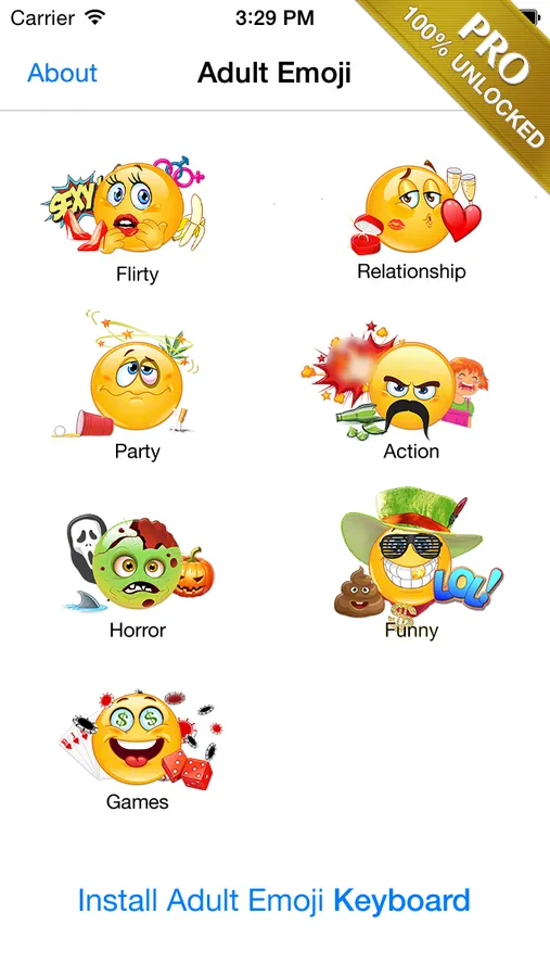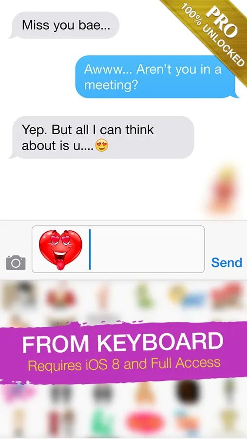 This is the PRO version of Adult Emoji Icons, with a KEYBOARD and all the galleries and icons 100% unlocked for unlimited use, forever.