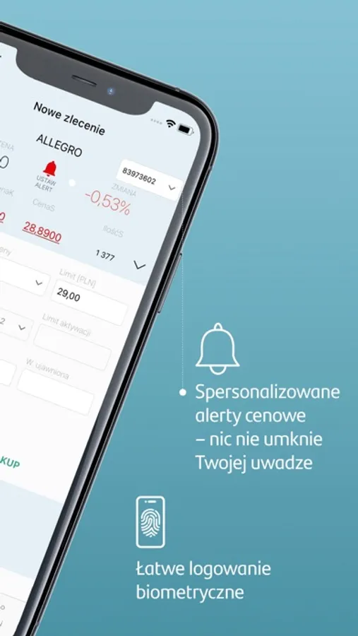 - definiowanie alertów push lub SMS synchronizowanych z serwisem Inwestor online.