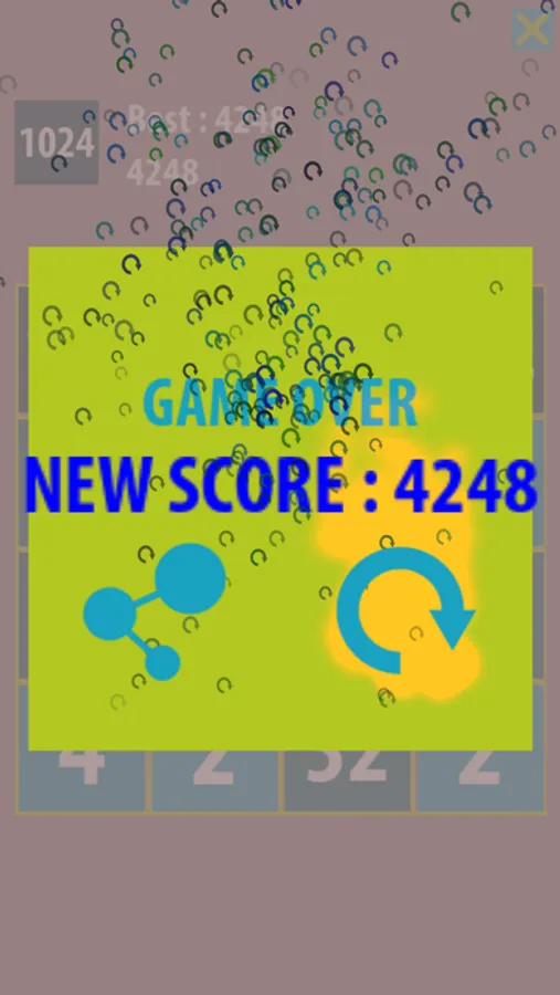 A scoreboard on the upper-right keeps track of the user's score. The user's score starts at zero, and is incremented whenever two tiles combine, by the value of the new tile. As with many arcade games, the user's best score is shown alongside the current score.