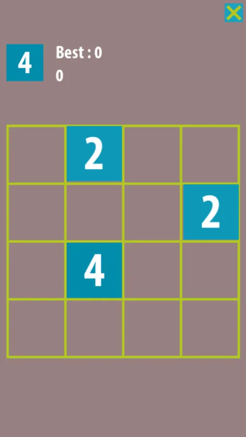 2048 is played on a gray 4×4 grid, with numbered tiles that slide smoothly when a player moves them using the four arrow keys. Every turn, a new tile will randomly appear in an empty spot on the board with a value of either 2 or 4. Tiles slide as far as possible in the chosen direction until they are stopped by either another tile or the edge of the grid. If two tiles of the same number collide while moving, they will merge into a tile with the total value of the two tiles that collided. The resulting tile cannot merge with another tile again in the same move. Higher-scoring tiles emit a soft glow.