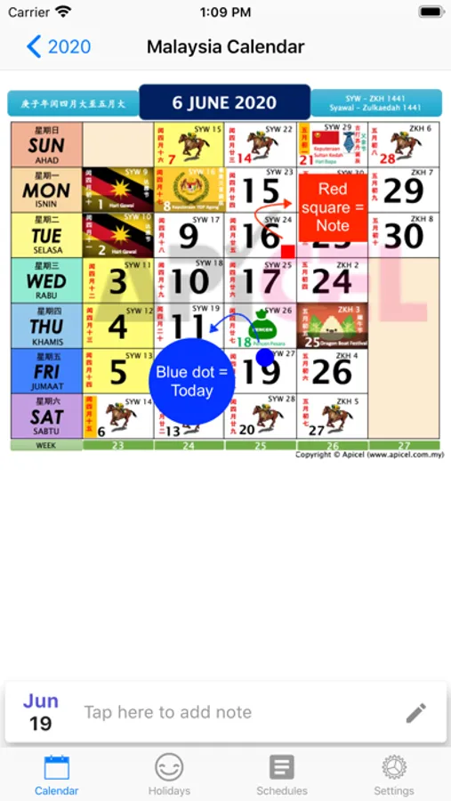 • Horse calendar which combined with Chinese lunar calendar, Islamic Hijri calendar and Tamil calendar