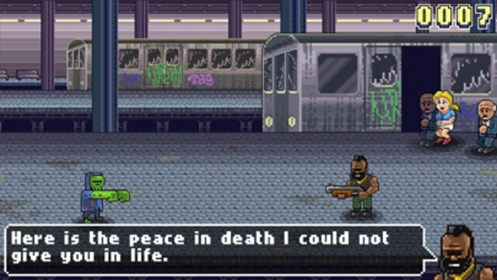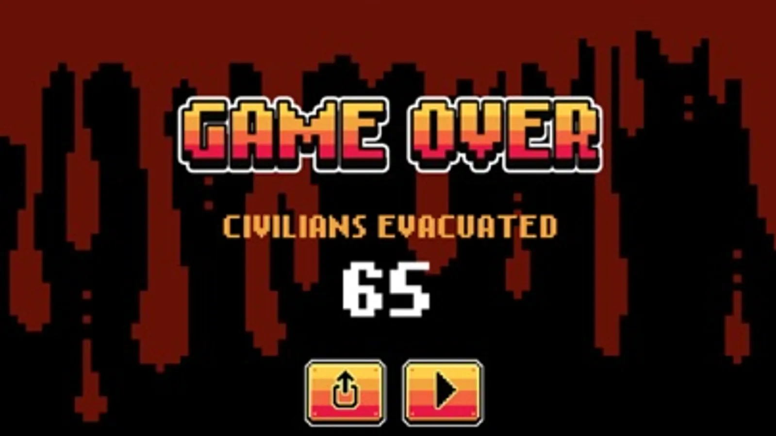 Hold Them Off! is a splatter-fest survival game. Hero, Laurence Tea, has accepted his fate. In a last ditch effort to meet his maker with a clear conscience, he has decided sacrifice himself (and lots of ammo) to save as many civilians as possible from the encroaching zombie horde. That is, until he gets his brains eaten!