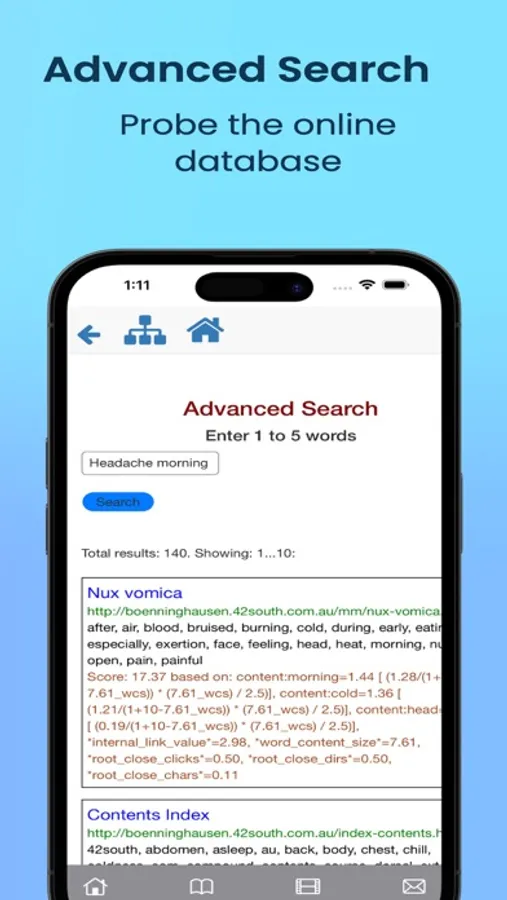 *Conduct advanced searches of the Boenninghausen Repertory and Materia Medica through the linked cloud database.