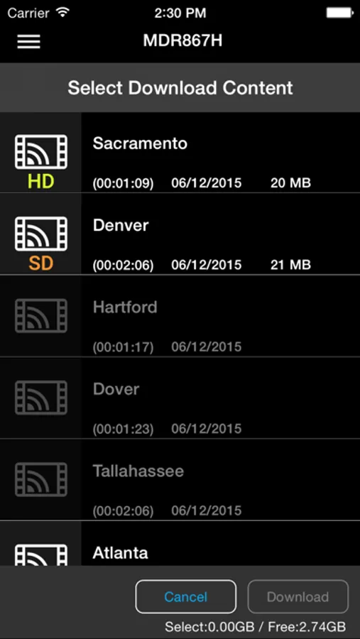 To download, content needs to be recorded in SD or HD. If your content was recorded in DR/FHD1/FHD2, you must convert to SD/HD in order to download.