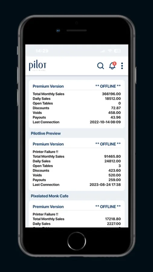 With mobility now the cornerstone for operating a cutting-edge business, Pilot Point of Sale Mobile Reporting is the perfect tool to stay in touch with your restaurant, coffee shop, bar, club, canteen or takeaway. Perfect for absent owners, multiple store owners, area managers and franchise head office staff.